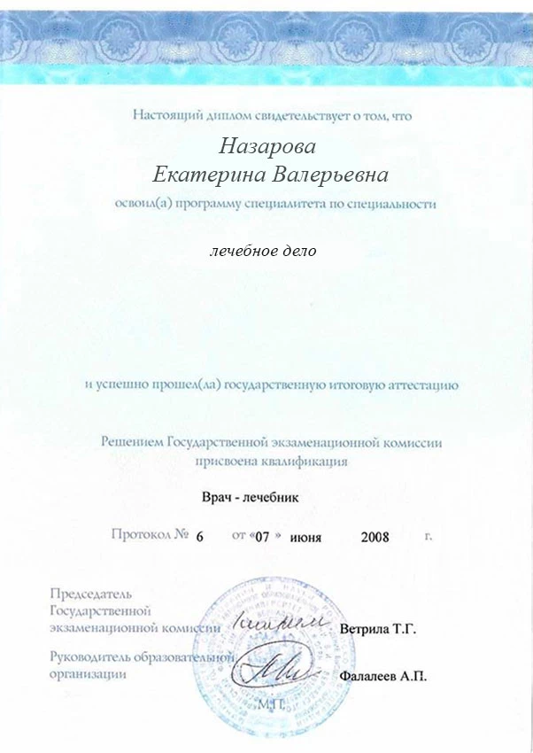 • 2008 г. — Крымский федеральный университет имени В. И. Вернадского (лечебное дело);